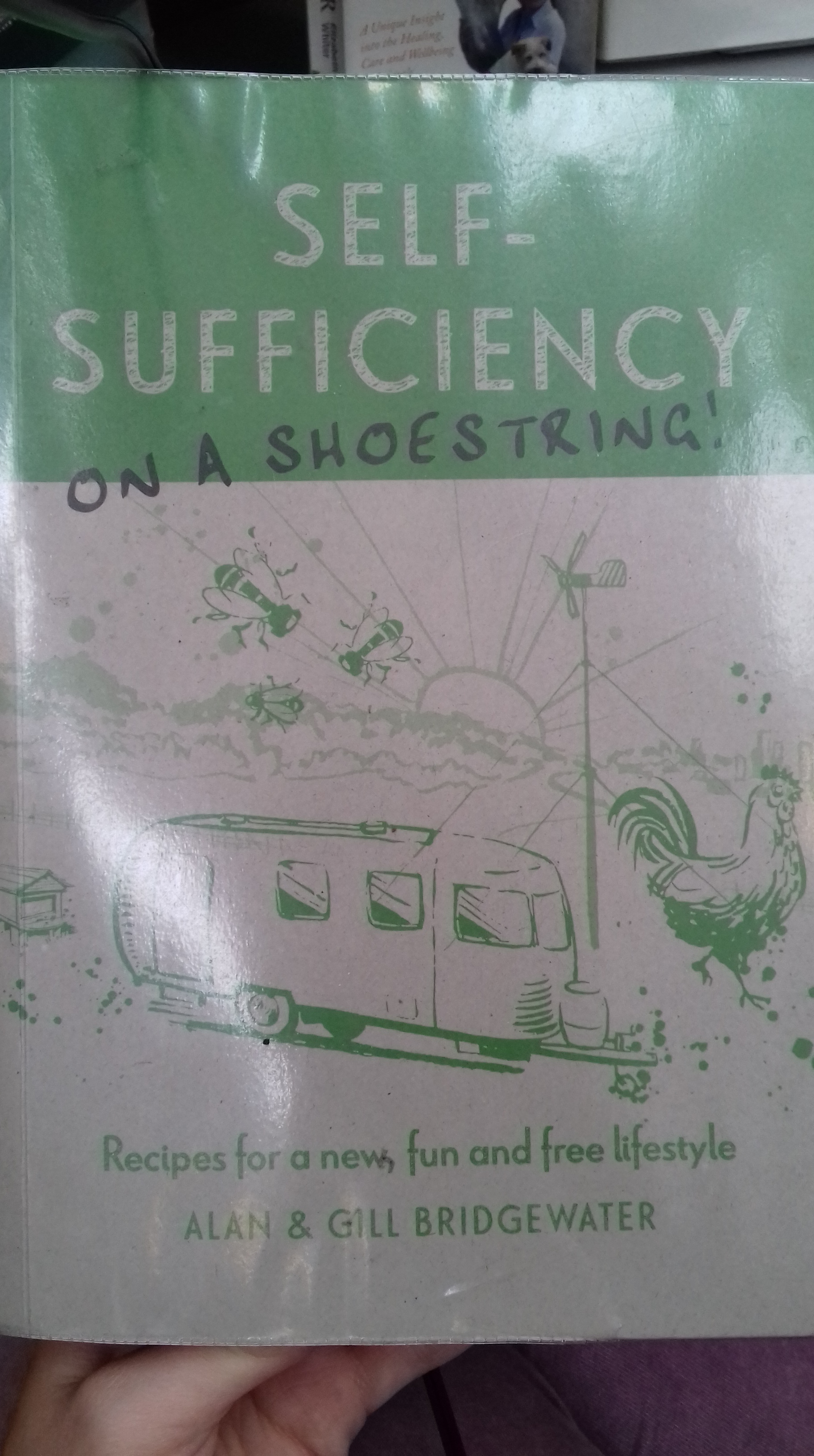 But in particular, I’ve been finding faulting lately with the narrative of “self-sufficiency”. I sat in a library recently with a pile of books this high all claiming to help homes become energy self-sufficient or how to start off-the-grid homestead farms. My goal was to try and scale-down some ideas for a home rainwater-collection system. But the authors have no interest in being scaled-down to suit the majority they are only interested in the minority of people with a fair-trade hemp sack of disposal income. Even the “shoe-string budget” book called for investments of thousands of dollars.